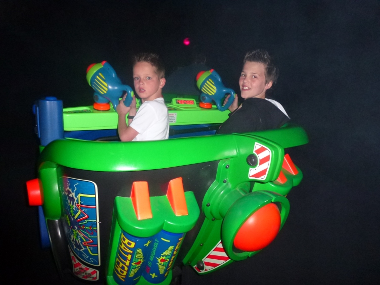 Vandaag hebben we toch zeker wel voordeel gehad van Thijn’s rolstoel. Bij verschillende attractie hebben we niet in de rij hoeven te staan. Dan is het ook nog leuk om naar zo’n park te gaan. Thijn houdt toch wel van spectaculaire attracties. Zoals de spacemountain en de Big Thunder Mountain. Het moet vooral hard gaan en hij zit dan het liefst met z’n handen in de lucht. Dat is lekker stoer.