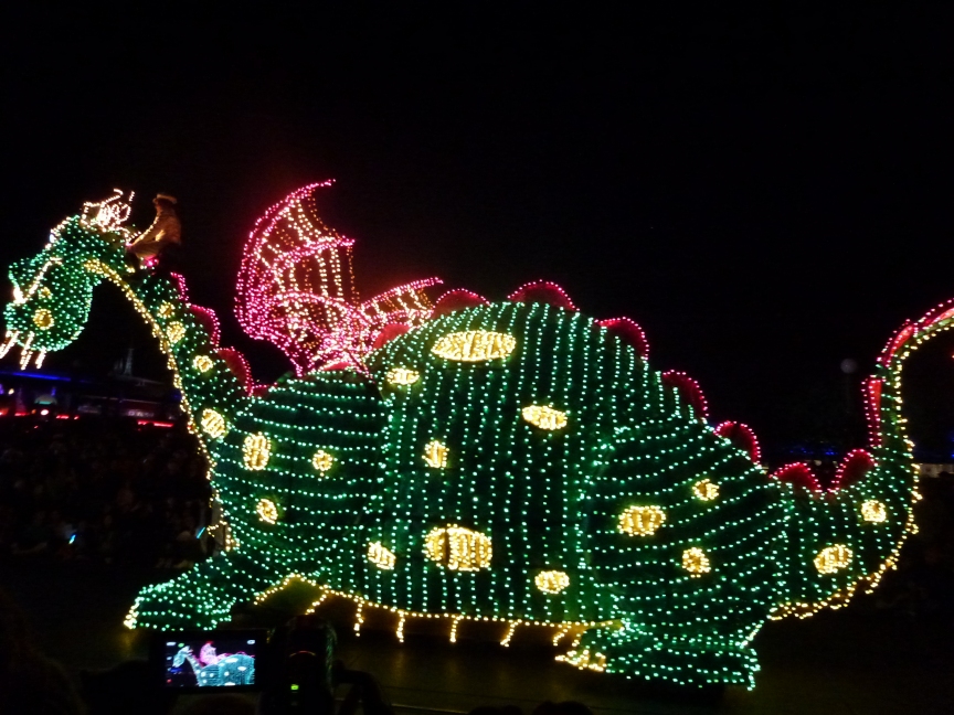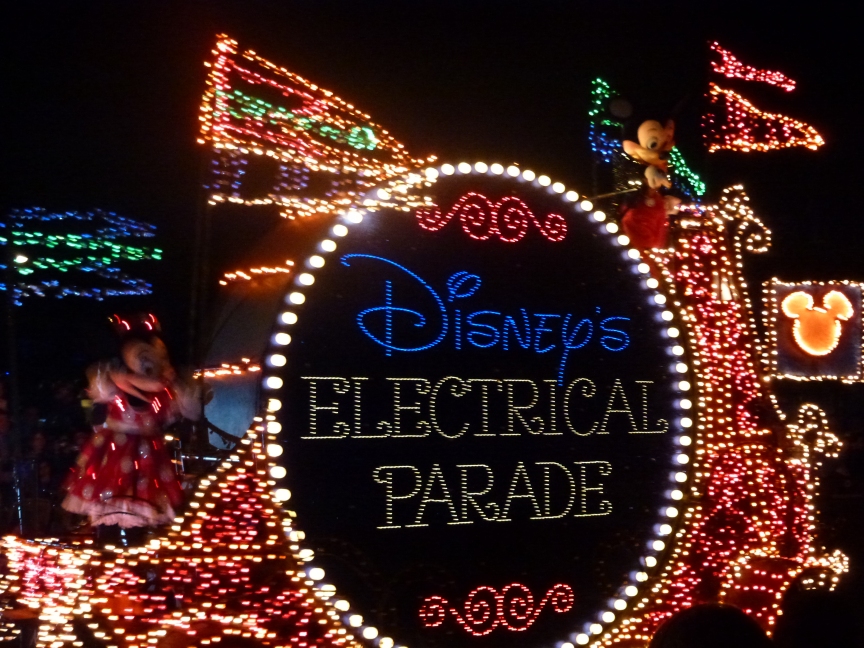 Om 20.00 uur de Electrical Parade gekeken. Het is een parade met verlichte Disney wagens en Disney figuren.
