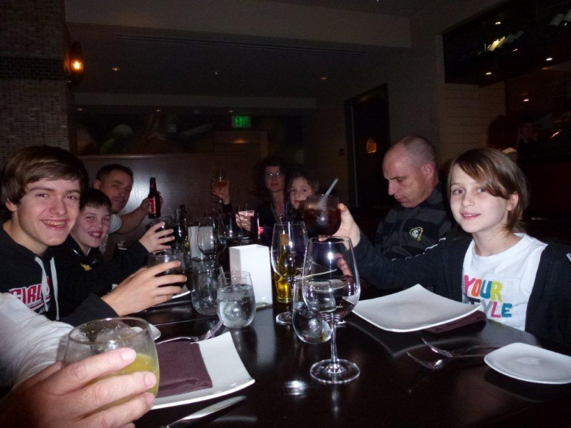 We gaan meteen aan tafel ons kerstdiner nuttigen. Helaas duurt dit erg lang en Imme valt op de bank in het restaurant in slaap. Zij krijgt dus niets mee van het kerstdiner. Om 21.00 uur (Nederlands tijd 03.00 uur) gaan we naar de hotelkamer en vallen de kids moe maar voldaan meteen is slaap. De hotelkamer is van alle gemakken voorzien, grote Amerikaans koelkast, vaatwasser, wasmachine/ droger. Het kan niet op. Echt op z’n Amerikaans.