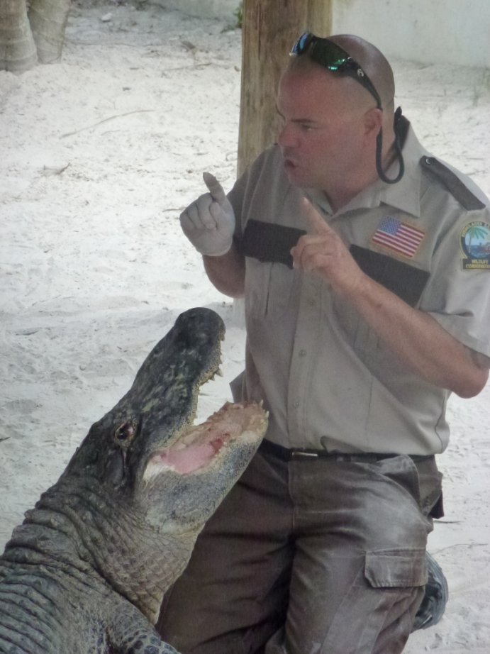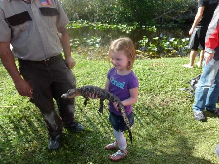 Na de tocht met de airboat zijn we naar een alligatorshow geweest. Thijn en Imme hebben daar een kleine alligator mogen aaien. Deze alligator was ongeveer 3 ½ jaar oud. Na de show mochten ze zelfs een baby alligator vasthouden. Deze baby alligator was 1 ½ jaar oud. Imme heeft er zelfs 1 vastgehouden. Imme durft dat wel, maar Thijn niet.